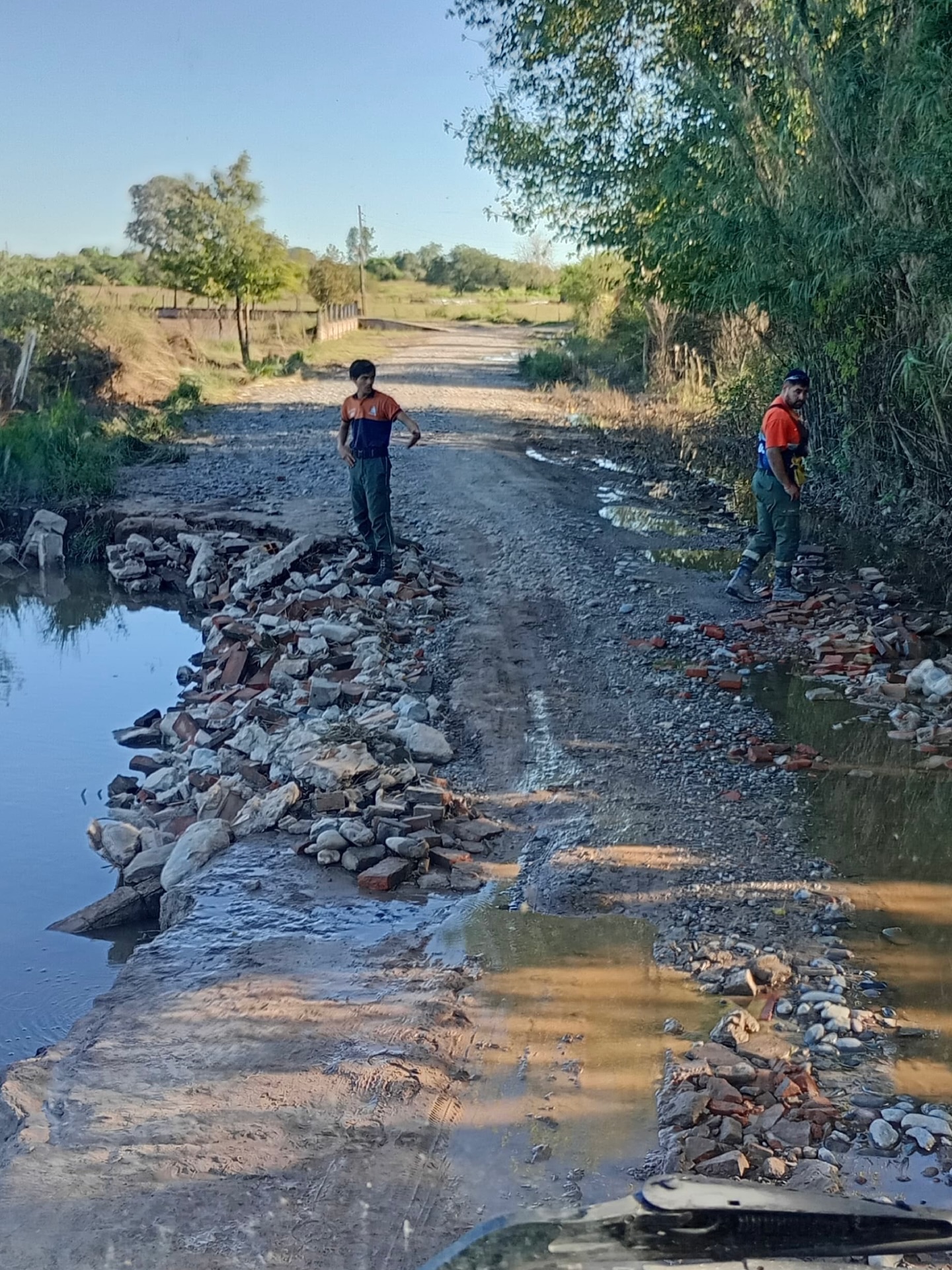 Durante la jornada de ayer, brigadistas de la Dirección Provincial de Defensa Civil realizaron tareas de relevamiento en la zona de Los Gómez Chico, departamento Leales, en sectores cercanos al río Salí.