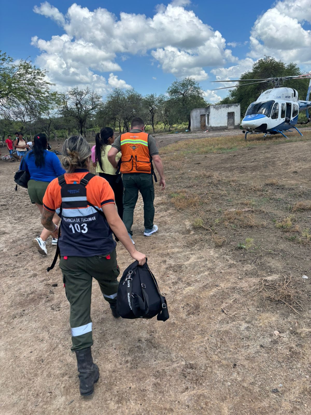 Personal de la Dirección Provincial de Defensa Civil realizó la entrega de víveres para vecinos de la zona y de Monteros, además de concretar la evacuación de una persona con diagnóstico de dengue para su atención sanitaria.